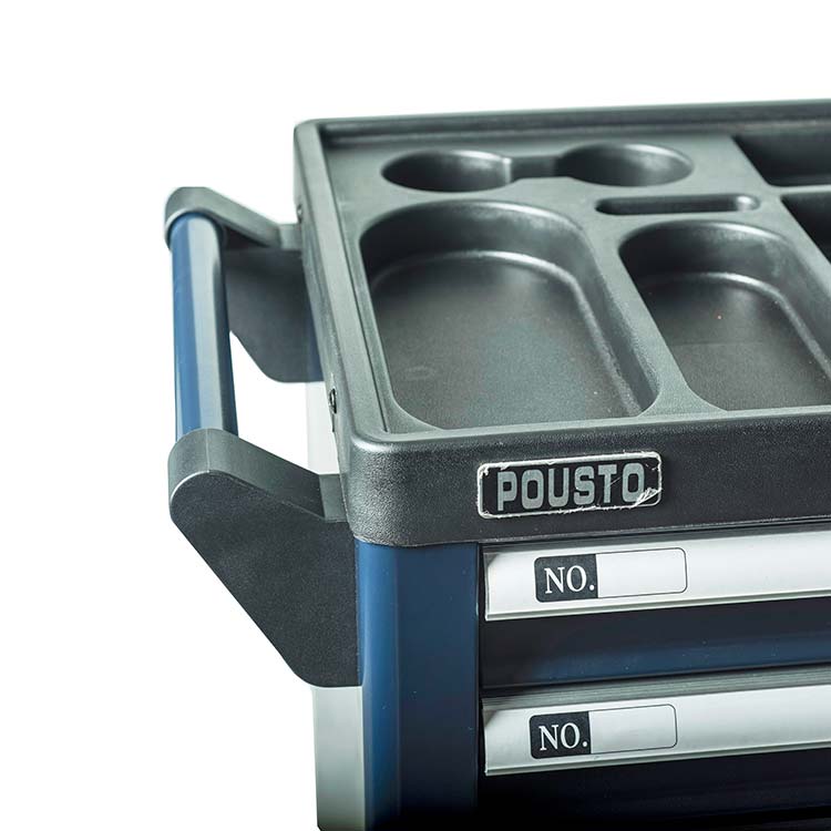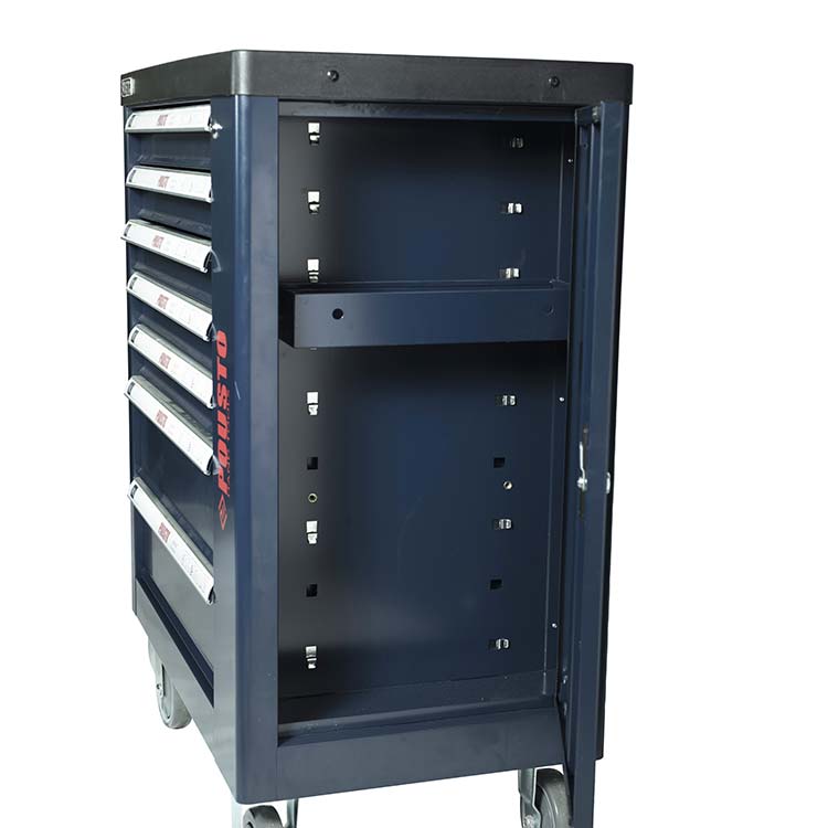 1.抽屜采用滾珠導(dǎo)軌,抽屜承重力為50kg/層,六層抽屜不同高度能儲(chǔ)存不同種類的工具,中央側(cè)鎖設(shè)計(jì),開(kāi)啟方便,每個(gè)抽屜都配有防傾倒保護(hù)鎖。