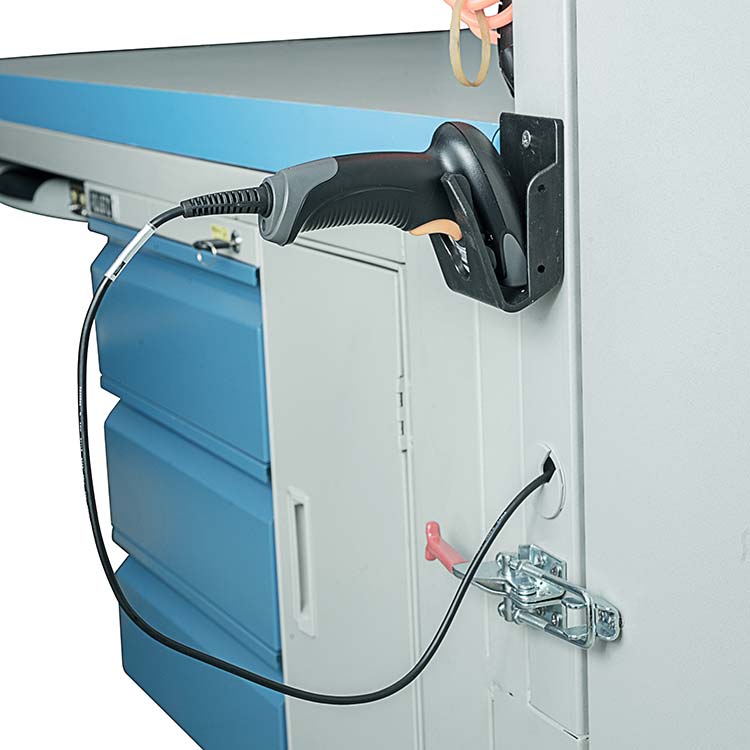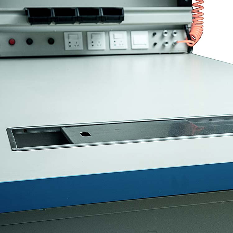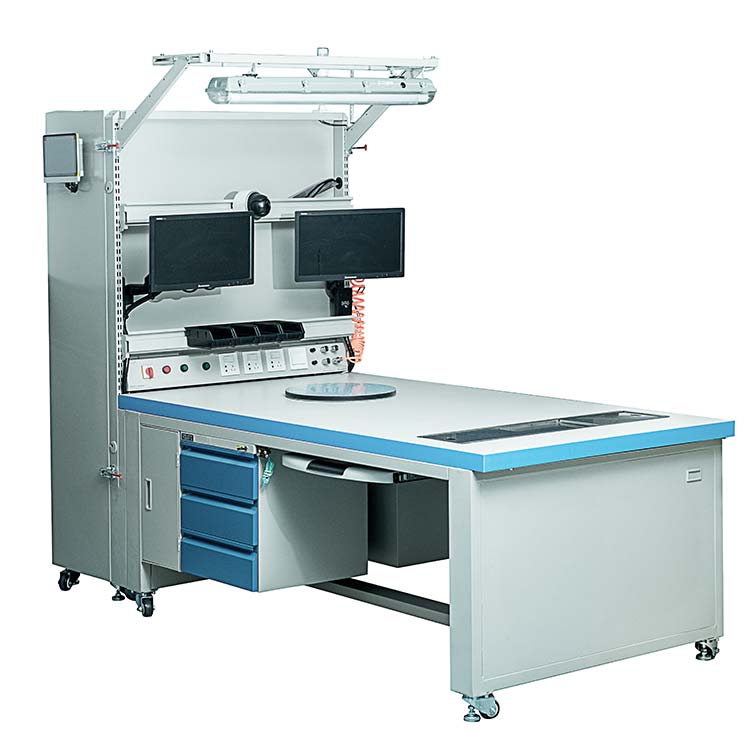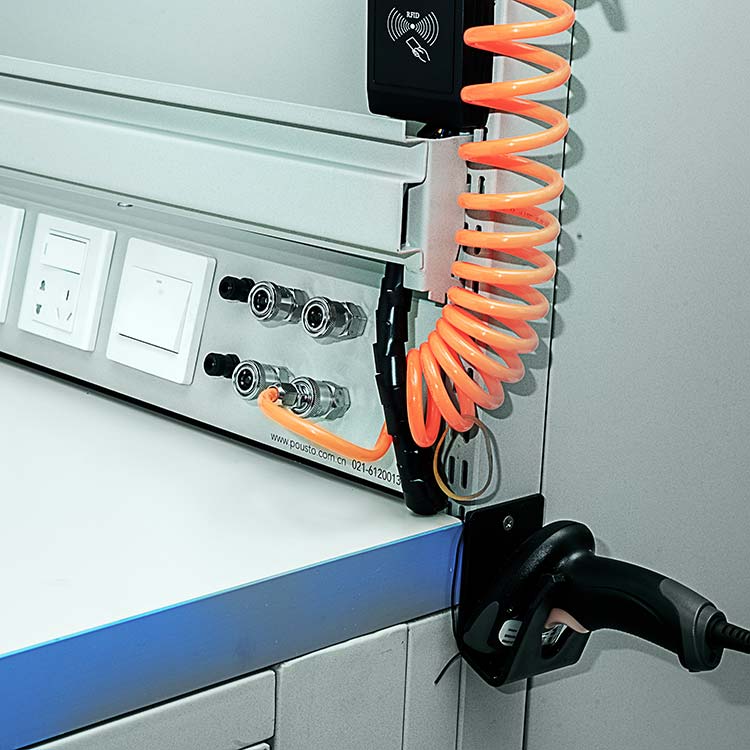 多功能工作臺(tái)具有掃碼,監(jiān)控?cái)z像,報(bào)警,讀卡器,氣吹槍,顯示屏等功能,并帶有隱藏式電控箱獨(dú)立供電
