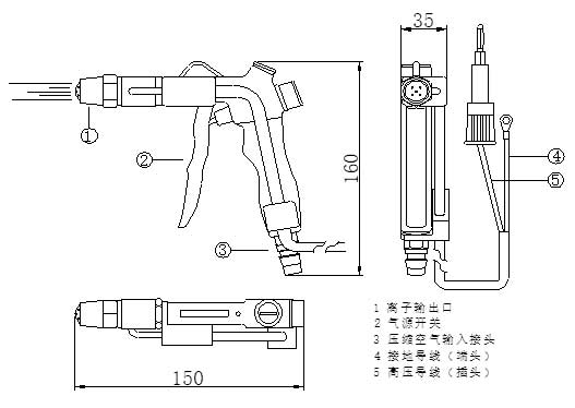 離子風(fēng)槍采用交流高壓電,連接至專用發(fā)射電極,使空氣電離,產(chǎn)生正、負離子,并由壓縮空氣輸送至被消除靜電物體表面,與正、負靜電電荷中和,達到高效、可靠消電的目的。是為目標(biāo)物體表面提供靜電防護而設(shè)計的快速、高效的除電吹塵裝置。