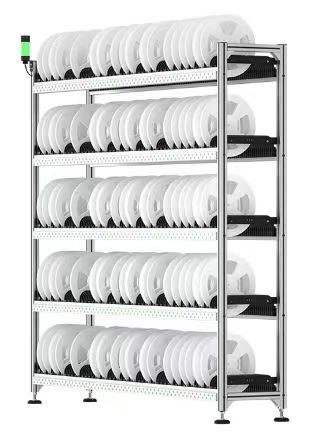A型智能料架為標準7寸料盤存儲料架,雙面存放,1400個儲位,單色,多色可選,最大可支持7色