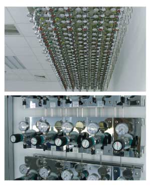 在現(xiàn)代化的實驗室中,為了完成實驗,需要用到多種分析儀器, 如氣相色譜儀,原子吸收,氣一質(zhì)聯(lián)用儀,ICP等等,其中這些 儀器需要用到高純氣體,傳統(tǒng)的做法是采用獨立鋼瓶分散供氣 的模式,這種供氣模式每臺儀器設(shè)備單獨配置氣體鋼瓶,分別 滿足每臺儀器設(shè)備的使用,但隨著近年來實驗室投資的不斷加 大,儀器設(shè)備的迅速增加,用氣量也逐年增加,傳統(tǒng)的供氣模式 已經(jīng)難以滿足儀器設(shè)備增加的需求,同時分散供氣模式帶來的 實驗室布局混亂,鋼瓶的頻繁更換也對實驗室的管理和維護造 成了困難,為了解決以上兩個方面的問題,就需要一套安全性 高且能實現(xiàn)集中分配供氣的系統(tǒng)完成從氣源向儀器的供氣這 就是實驗室高純氣體管道系統(tǒng)的功能所在。